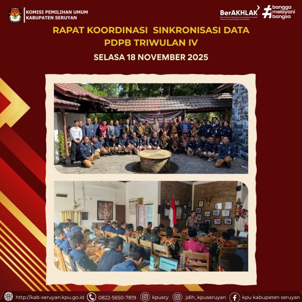 Seruyan — KPU Kabupaten Seruyan menghadiri undangan KPU Provinsi Kalimantan Tengah dalam rangka Rapat Koordinasi (Rakor) dan Sinkronisasi Data Pemilih Berkelanjutan (PDPB) Triwulan IV Tahun 2025, yang dilaksanakan pada Selasa, 18 November 2025, bertempat di Rumah Tjilik Riwut Gallery & Resto, Palangka Raya.