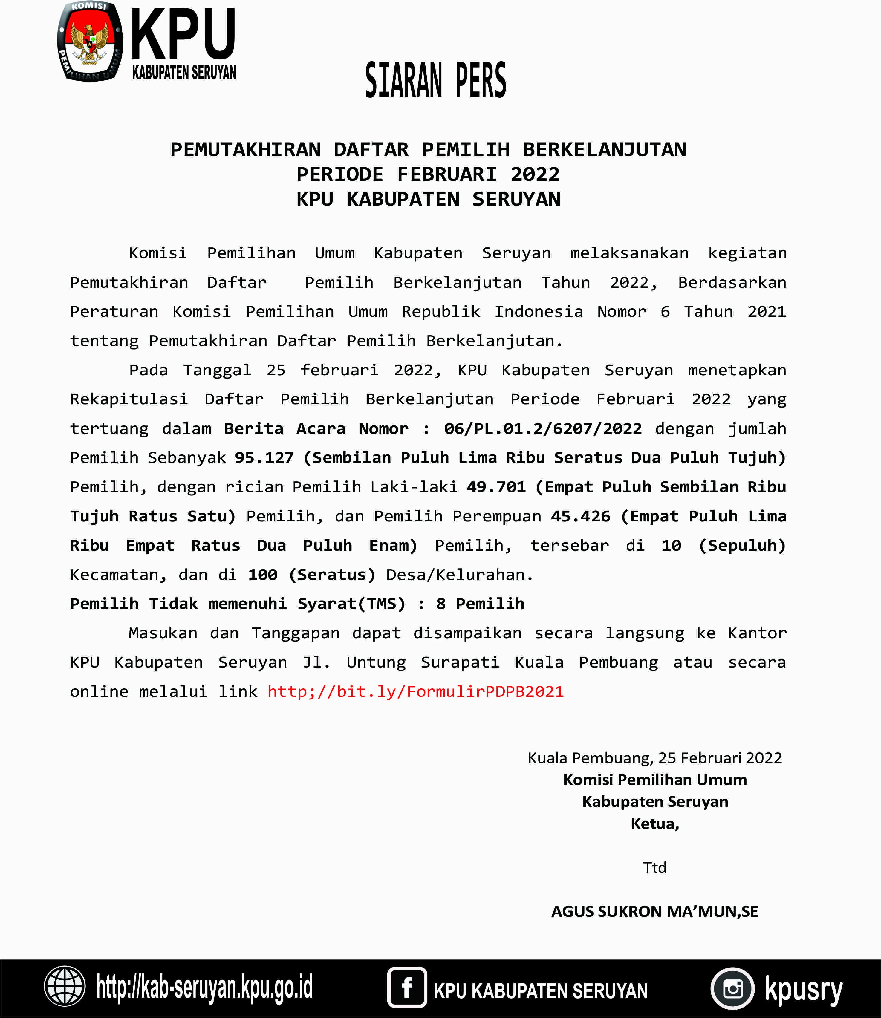 Perubahan Daftar Pemilih Berkelanjutan Periode Februari 2022: https://bit.ly/PengumumanPDPBSRYFeb2022