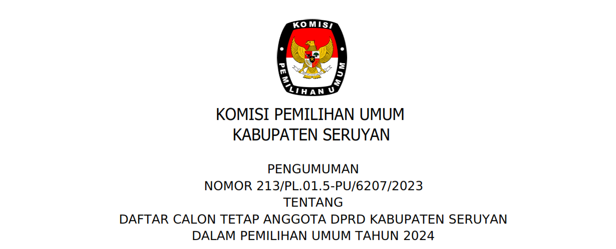 PENGUMUMAN TENTANG DAFTAR CALON TETAP ANGGOTA DPRD KABUPATEN SERUYAN DALAM PEMILIHAN UMUM TAHUN 2024